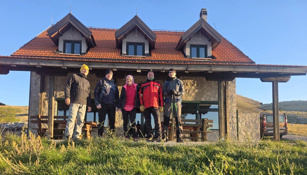 Nakon otprilike dva sata hoda, stižemo do novoobnovljenog planinarskog skloništa “Vjetar s Dinare” koje se nalazi na 1330 m Toplo sklonište u kojem je vatra nedavno gorjela dalo nam je potreban odmor i toplinu.