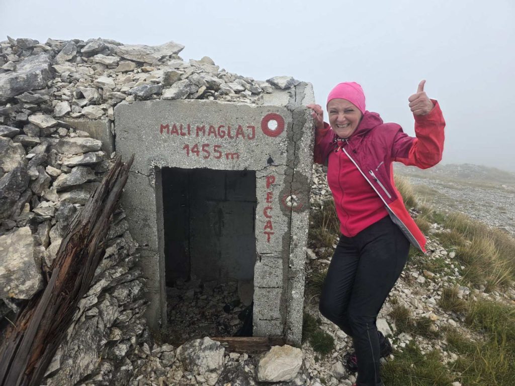 Na samom vrhu, kratko smo se sklonili u stari bunker kako bismo popravili kabanice i napravili nekoliko fotografija za uspomenu. Ubrzo smo krenuli natrag.