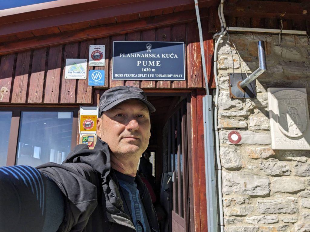 Nastavili smo put, prateći putokaz koji signalizira još 2 sata hoda do skloništa Pume. Napokon je došao i taj trenutak: ugledali smo Planinarsko sklonište Zlatko Prgin – “Pume” 1630 m
