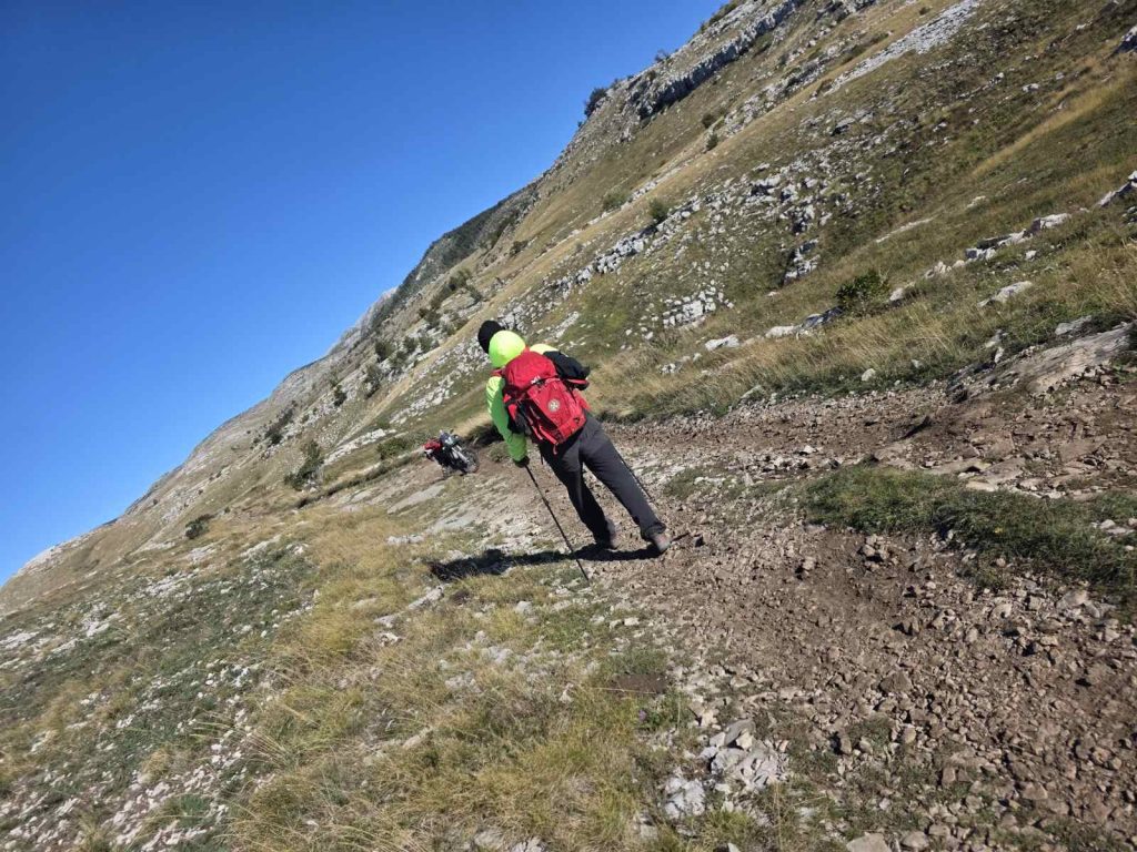 Jutro je osvanulo vedro i sunčano, obećavajući dobar dan za hodanje. Nakon provjere teških ruksaka, kretanje je započelo u optimističnom tonu. Već u prvim satima hodnja, unatoč suncu, osjetili smo snažan vjetar s Dinare.