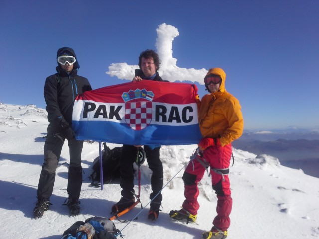 Ujutro nakon kave, krećem na vrh i pozdravljam se s novim prijateljima koji će nakon doručka krenuti natrag u Egejac do svog auta. Nakon uspješno završenog uspona na vrh, oko podneva vratio sam se natrag do skloništa. Kratak odmor i pakiranje preostalih stvari u ruksak. Tijekom tog vremena prolaze pokraj skloništa još dvojica planinara iz smjera Libinja koja su krenula na vrh. Malo iza njih do skloništa dolazi i dežurni planinar PD “Belveder” iz Biograda koji ovog vikenda ima zadatak da obiđe sklonište. Zbog neodgovornog ponašanja pojedinih planinara što se nisu brinula o kućnom redu skloništa PD “Belveder” je odlučio da će redovito svaki vikend netko iz društva obilaziti sklonište. Kad sam spremio sve stvari i stavio opremu, dereze na gojzerice za prvi dio spusta do Lišćana bunara, pozdravljamo se i krećem natrag. Od Lišćana bunara dereze zamijenjujem s krpljama za preostala dva i pol sata silaska s bijele planine…